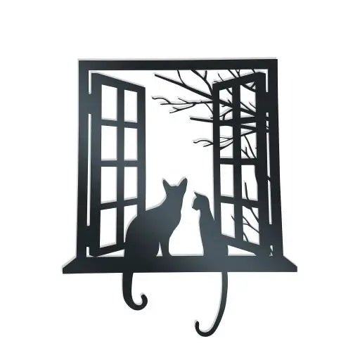 Chats à la Fenêtre — Décoration Murale en Métal